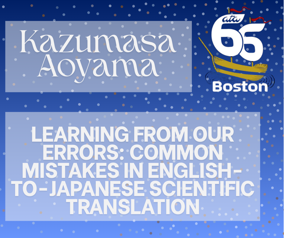 Session Title: Common Mistakes in English-to-Japanese Scientific Translation, presented by Kazumasa Aoyama