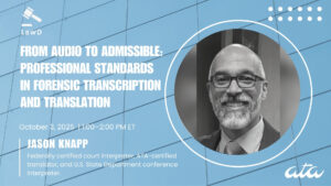 In this beginner-level webinar, Jason will introduce interpreters and translators to the principles, practices, and professional standards of forensic transcription and translation.